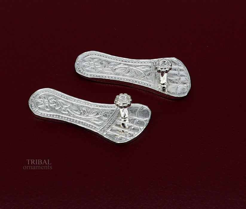 The feet rest upon a pedestal engraved with the divine Sudarshana chakra, symbolizing the Lord's supreme protection. According to legend, these holy feet represent Lord Ram's presence on earth, granting blessings to his ardent devotees. Place this stunning sculpture in your home or office, allowing it to radiate positive energy, prosperity, and fulfillment.